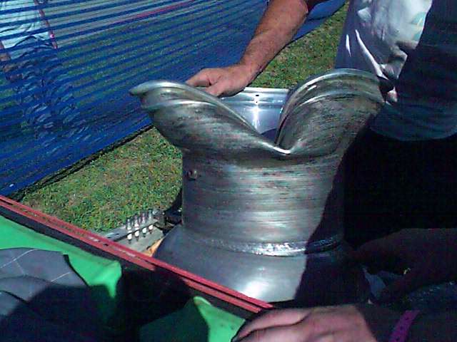 In Class V at the 2005 Essex Junction Jamboree, Mud Missile hits the lights at the finish, bending the front right rim and going out of bounds: